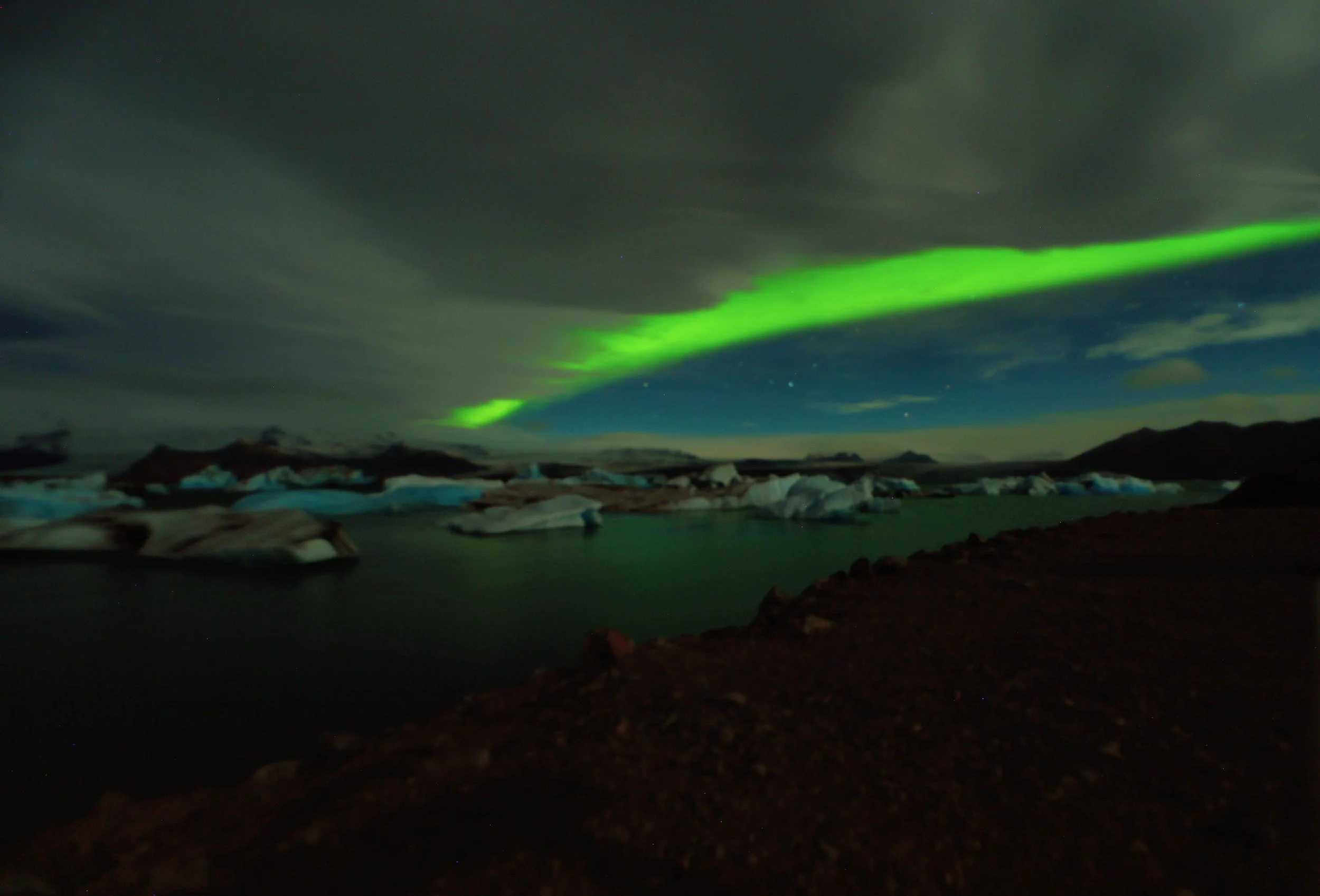 The first night they appeared it was vivid but brief. The clouds were heavy but lights found a crease and popped their head out to say hello.