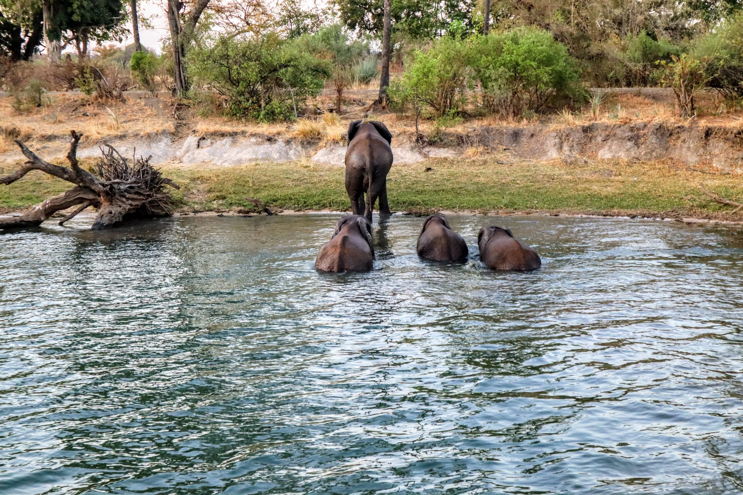 Some time had passed and we saw something lurking in the water creating massive bubble on the surface. We had no idea what it was until 5 minutes later a small heard of bull elephants popped out and disappeared into the landscape.