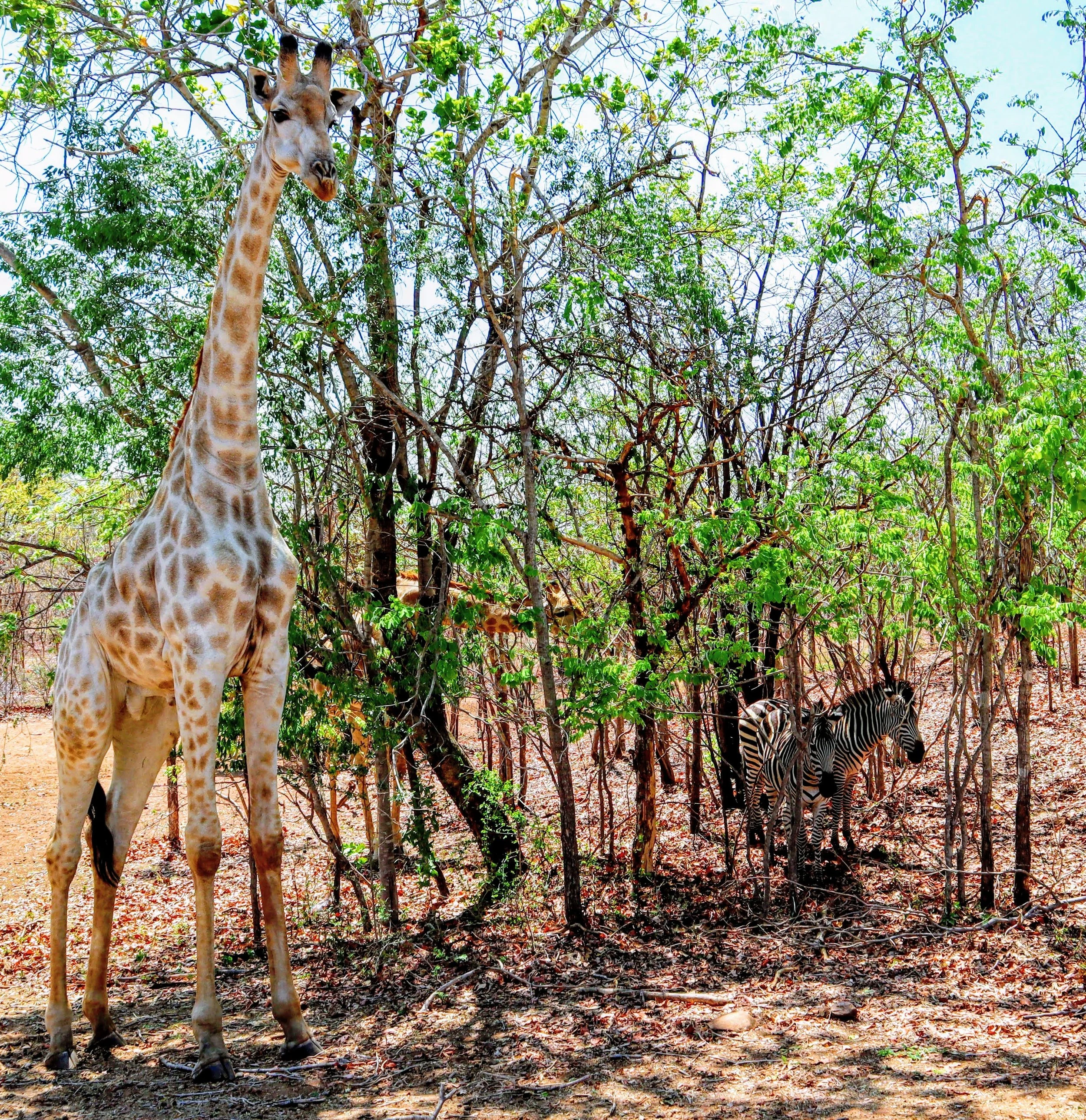 You will encounter wild life so pay attention because I didn’t at first. Im not sure how I missed this at first or how anyone can miss a nearly 20 foot tall animal (16’ – 19’ is average adult size) but I did. He blended right into tree. Im also not sure what the relationship between this gentle giant and his 2 compadres is but there they were just hanging out in the shade together like old college roomates. It was so odd to see that I had to check the trees and the animals to make sure they weren’t tied up some how.